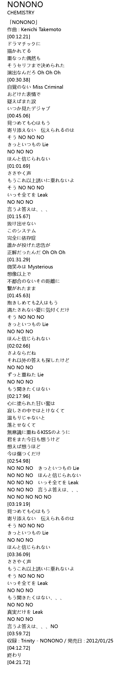 | [04:10.72] | shōu lù Trinity NONONO fā mài rì 2012 01 25 |