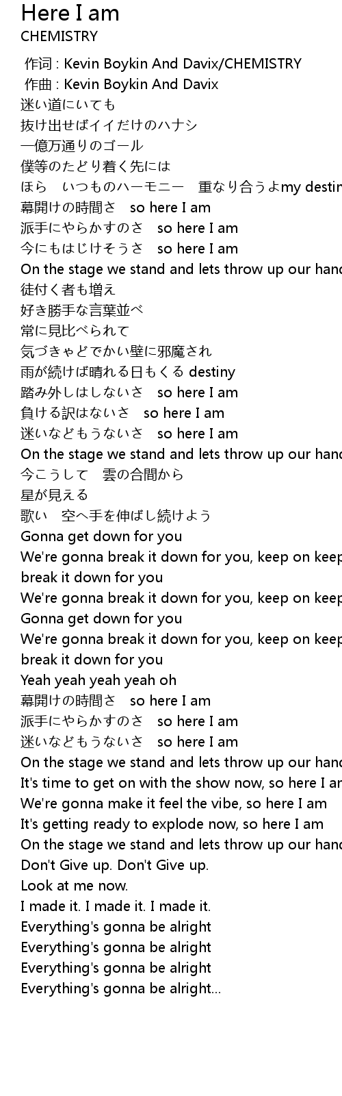 | [02:38.603] | We' re gonna make it feel the vibe, so here I am |