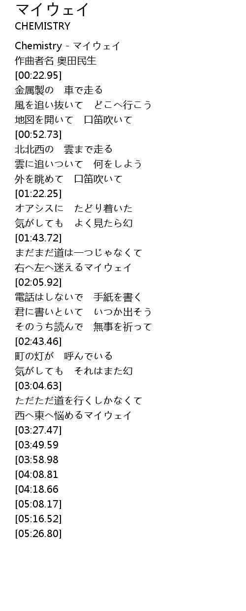 | [01:55.61] | 右へ左へ迷えるマイウェイ |
