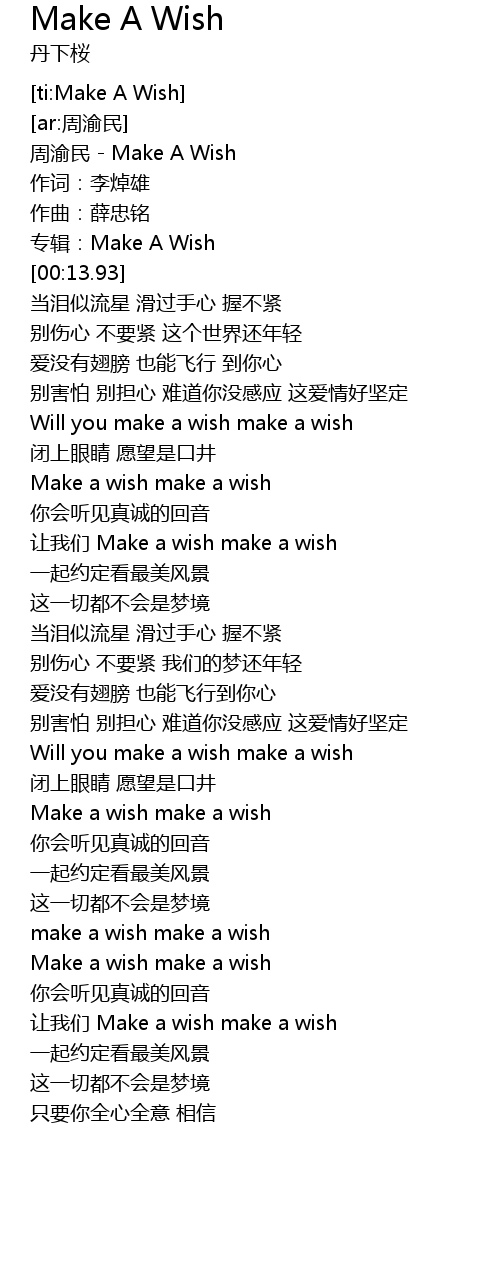 | [00:01.93] | zhōu yú mín Make A Wish |