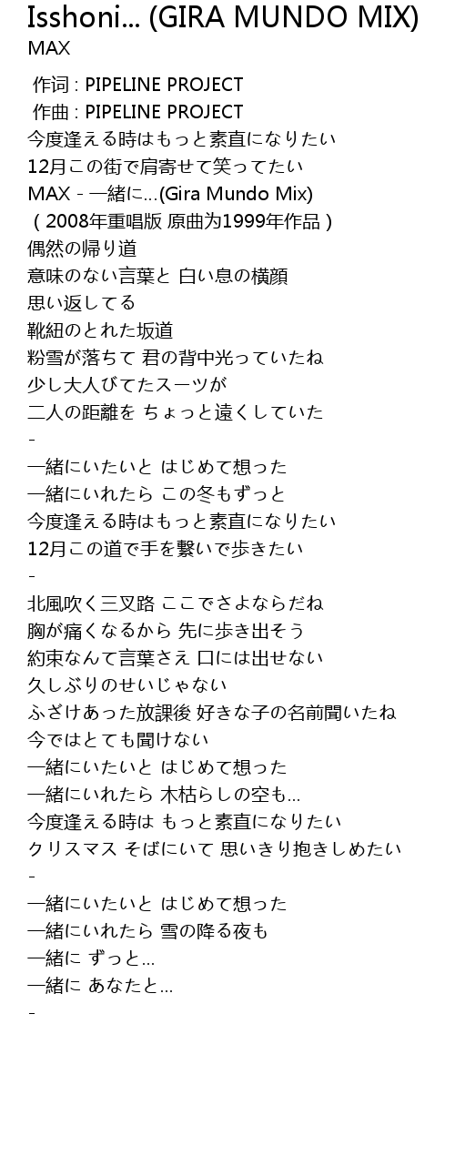 | [00:25.181] | MAX - 一緒に…(Gira Mundo Mix) |