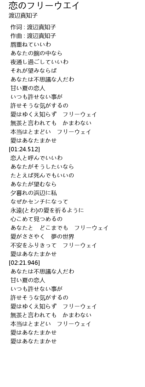 | [00:56.148] | 愛はゆくえ知らず フリーウェイ |