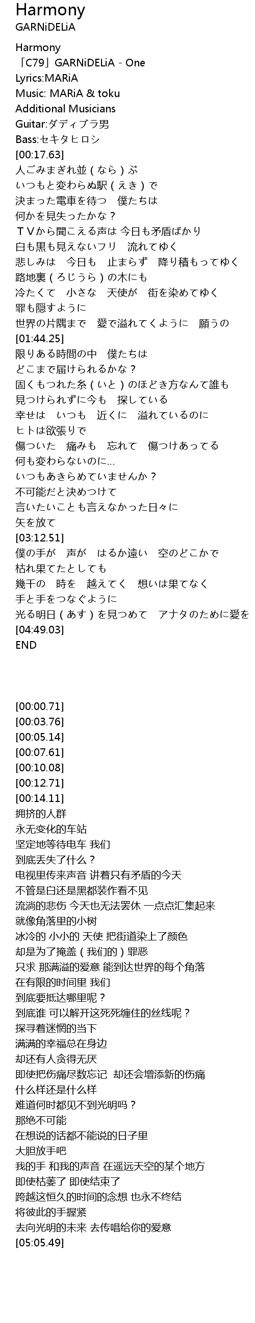 | [00:03.76] | C79 GARNiDELiA One |