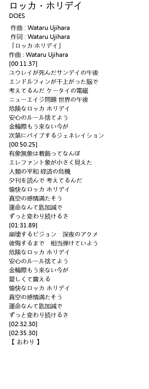 | [02:19.19] | 愉快なロッカ ホリデイ |
