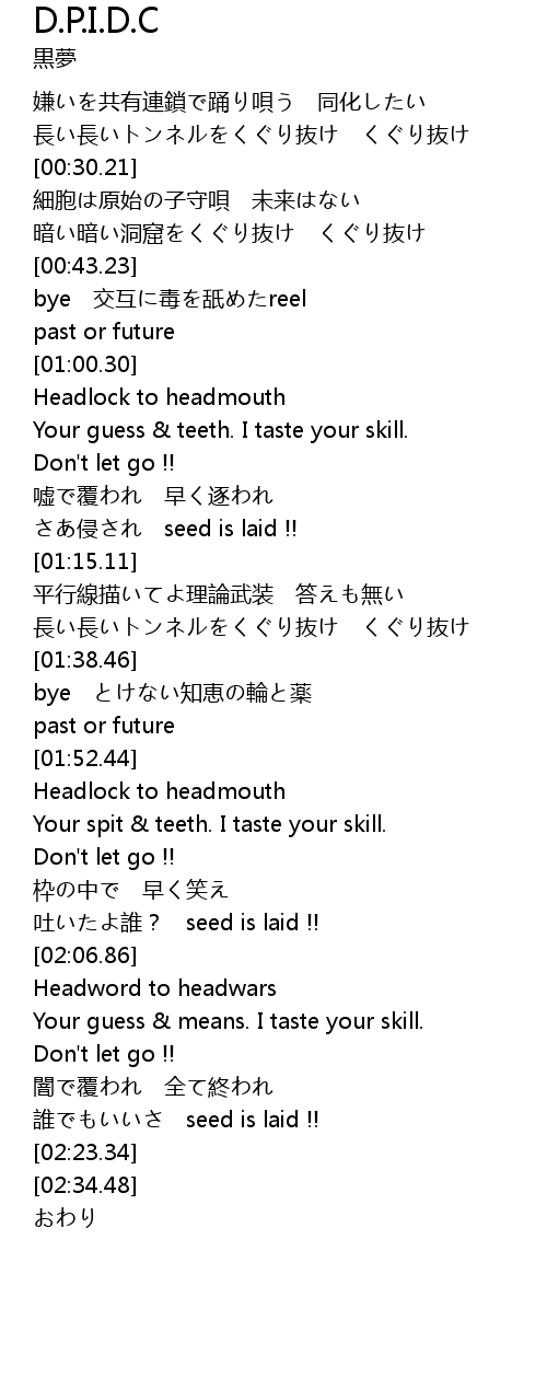 | [00:48.70] | bye 交互に毒を舐めたreel |