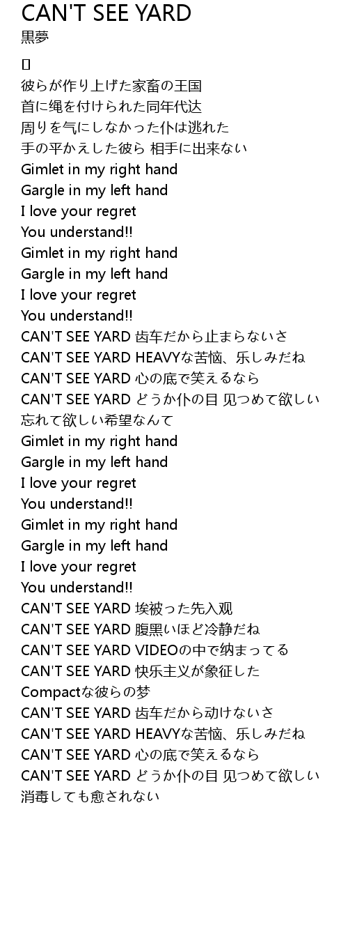 | Song | CAN'T SEE YARD |