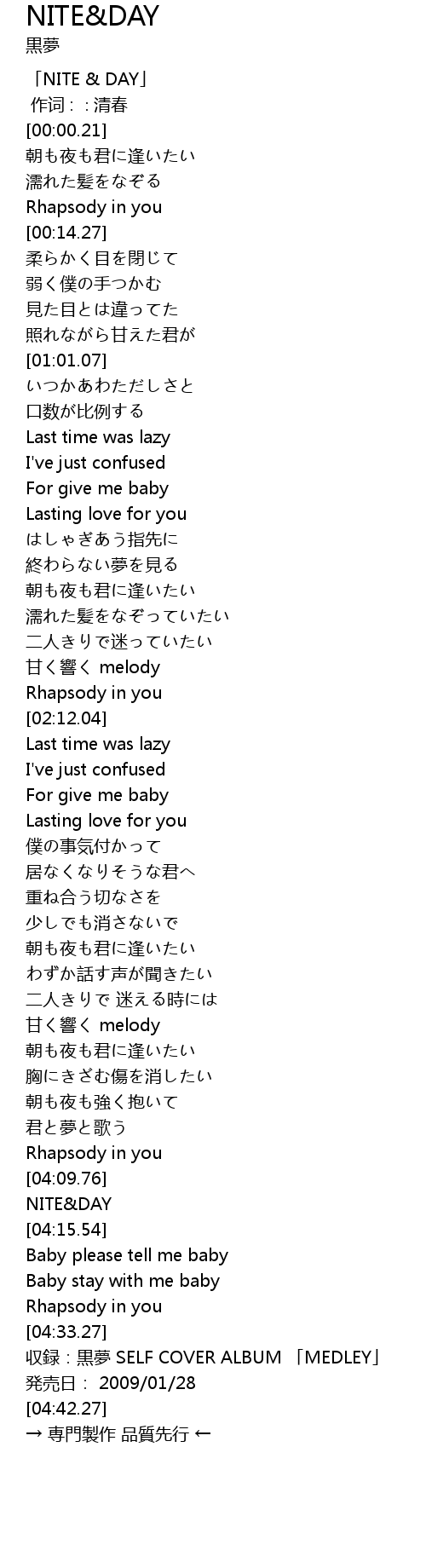 | [04:14.07] | NITE&DAY |
