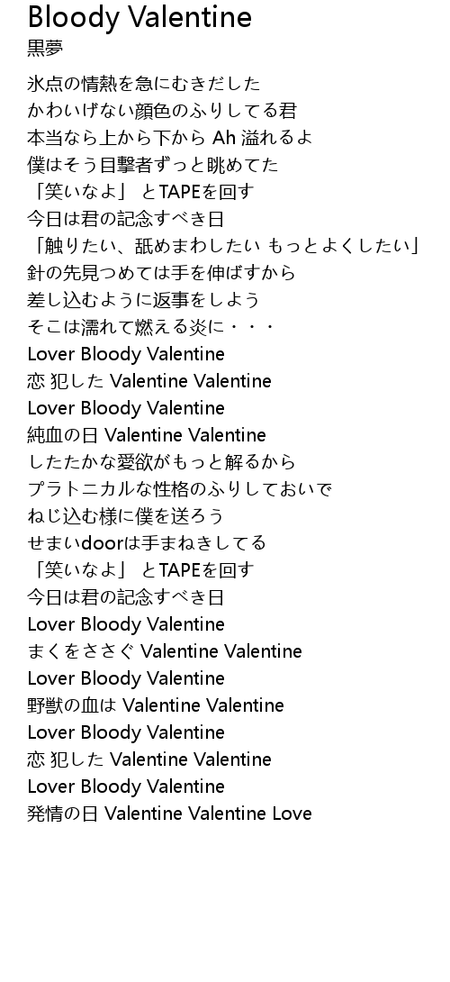 | Song | Bloody Valentine |
