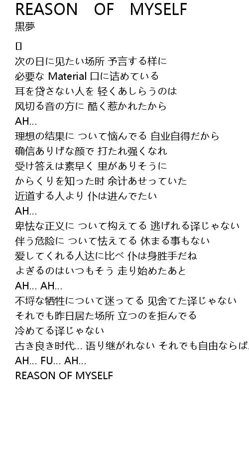 | Song | REASON OF MYSELF |