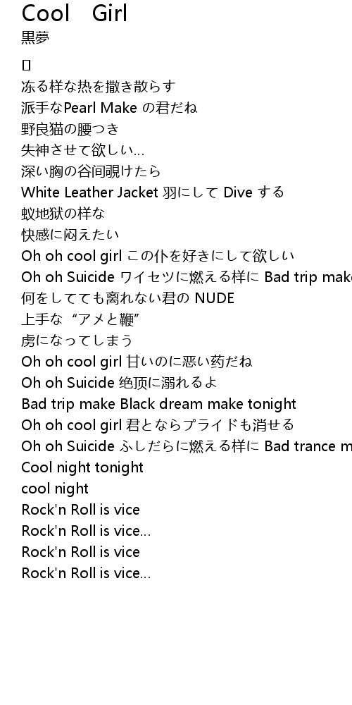 | Oh oh cool girl 甘いのに恶い药だね | |