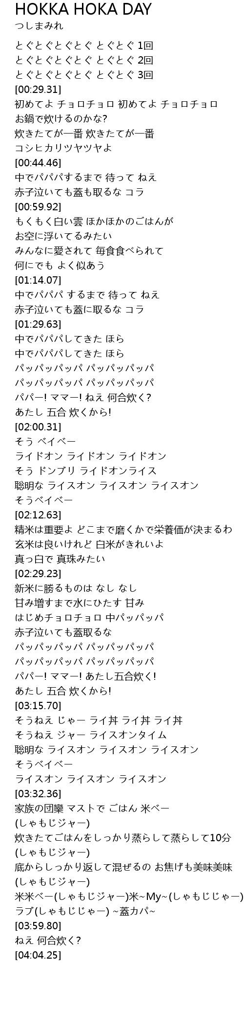 | [03:53.31] | 米米ベー(しゃもじジャー)米~My~(しゃもじじゃー) |