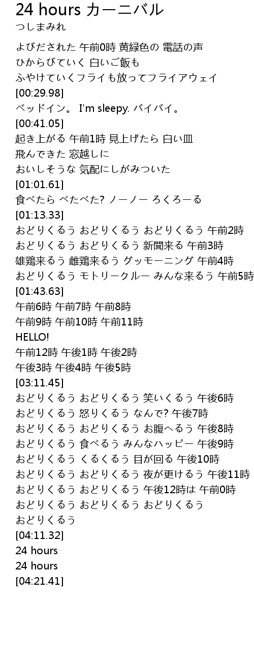 | [03:41.82] | おどりくるう くるくるう 目が回る 午後10時 |