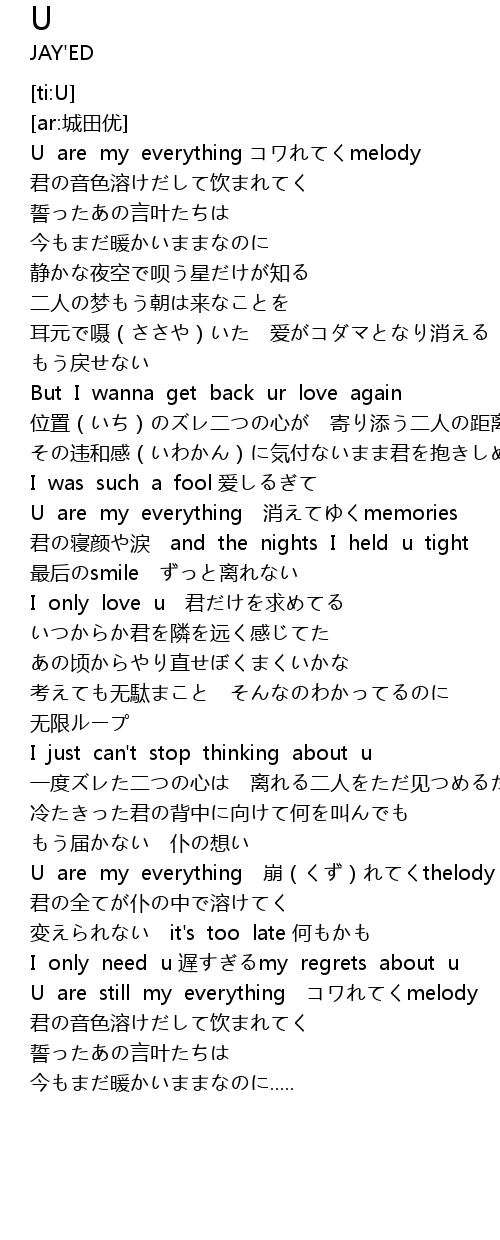 | [03:32.258] | U are still my everything コワれてくmelody |