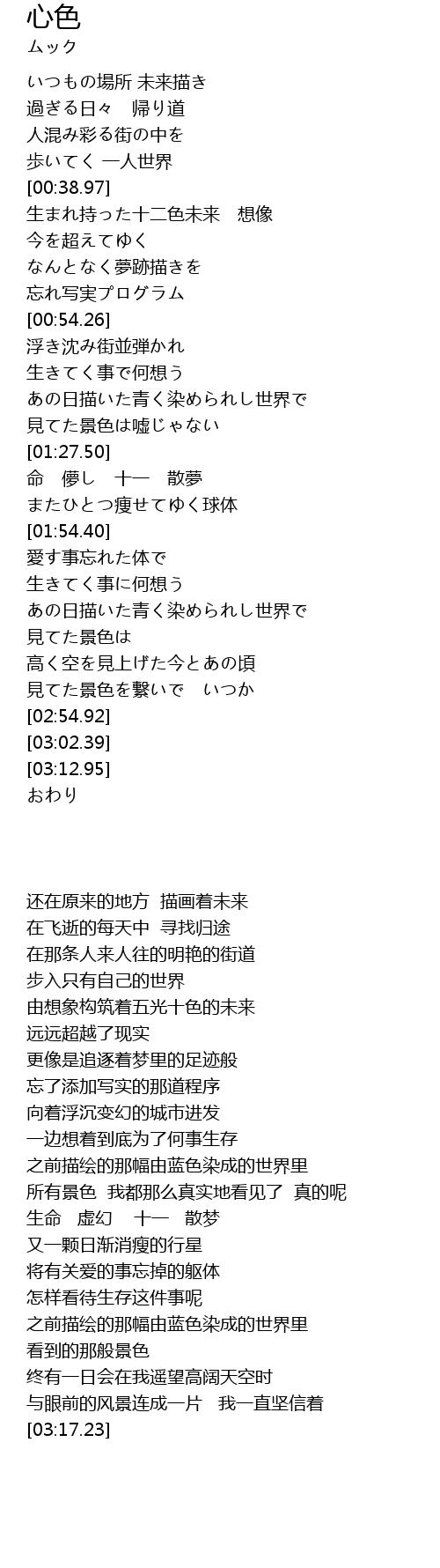| [00:40.13] | 生まれ持った十二色未来 想像 |