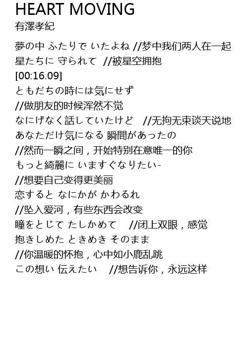 | Song | HEART MOVING |