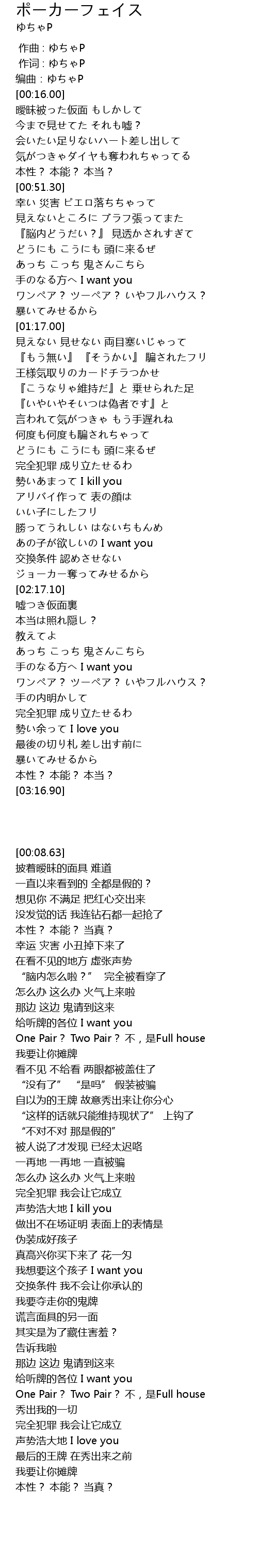| [02:52.56] | ワンペア? ツーペア? いやフルハウス? |