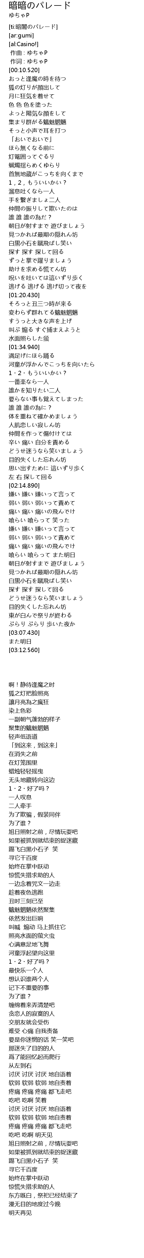 | [01:24.900] | 変わらず群れてる魑魅魍魎 |