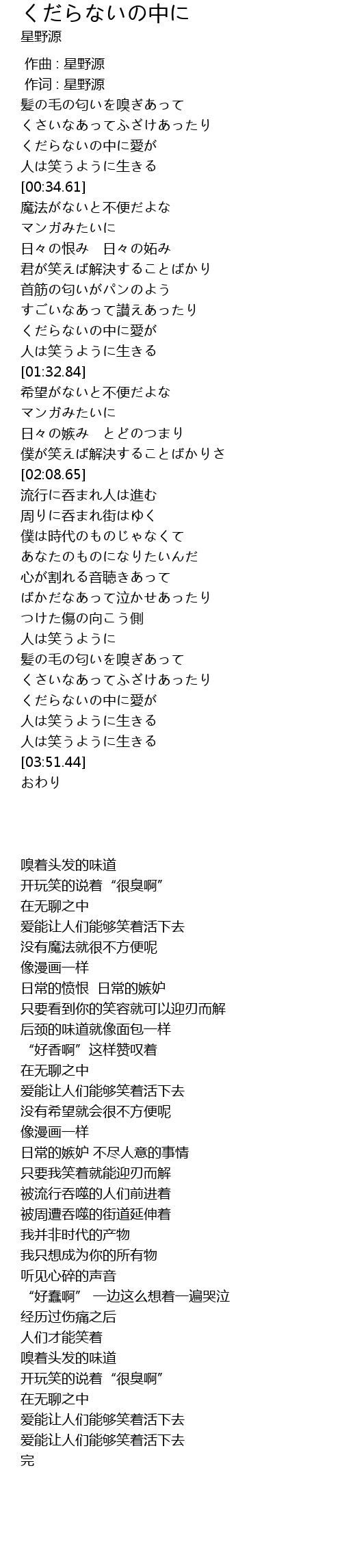 作词 : 星野源 |