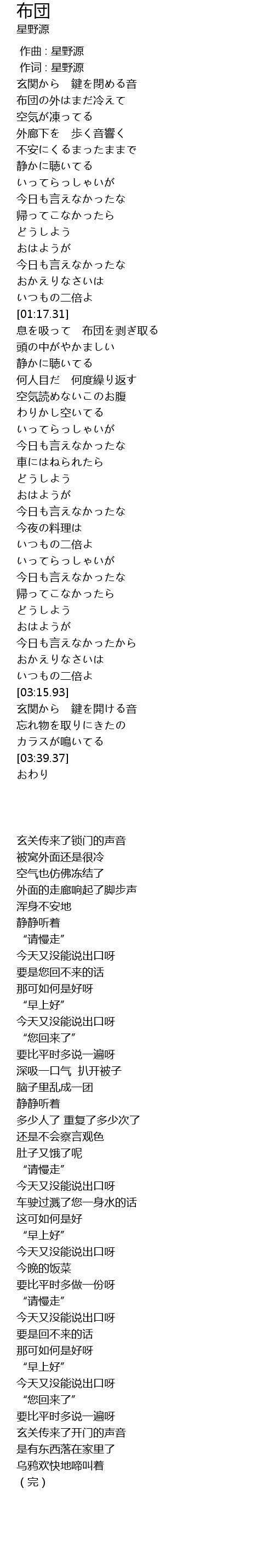 | [01:21.05] | 息を吸って 布団を剥ぎ取る |