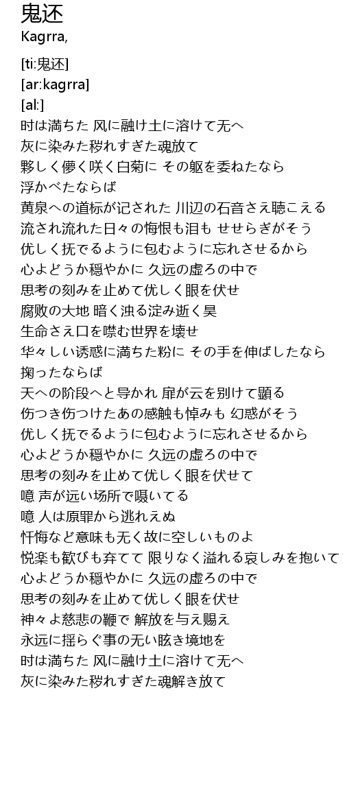 | [00:51.61] | 心よどうか穏やかに 久远の虚ろの中で |