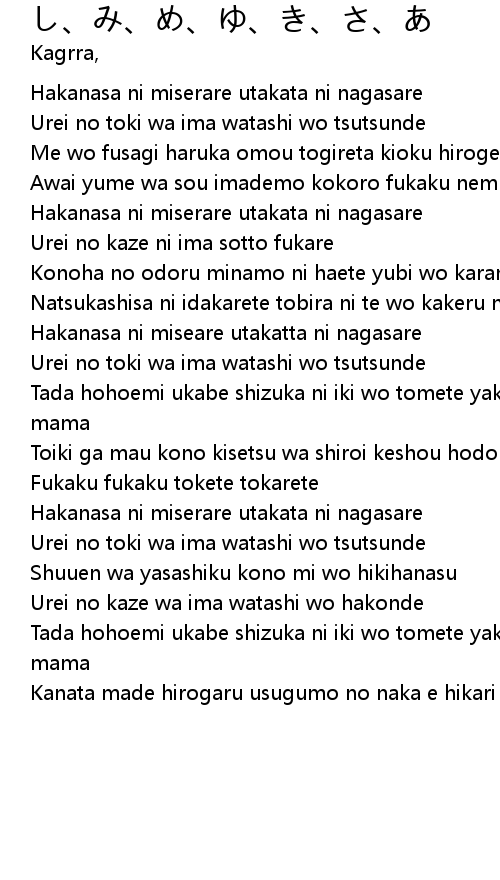 | Urei no toki wa ima watashi wo tsutsunde | |