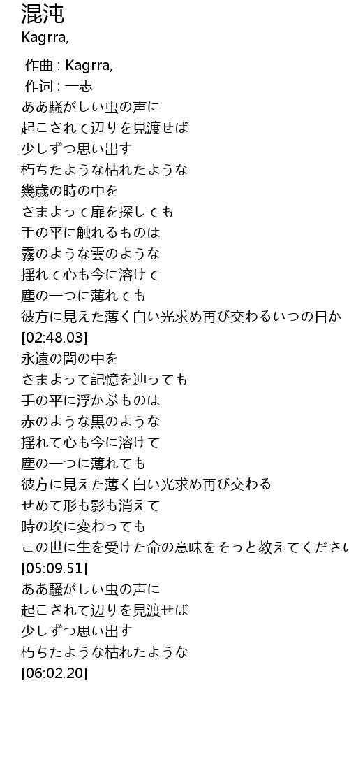 | [00:00.00] | zuò qǔ : Kagrra, |