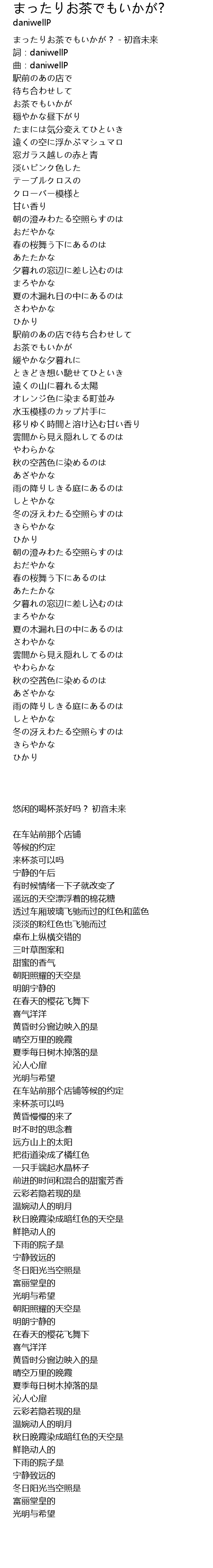 | [00:00.41] | まったりお茶でもいかが? - 初音未来 |