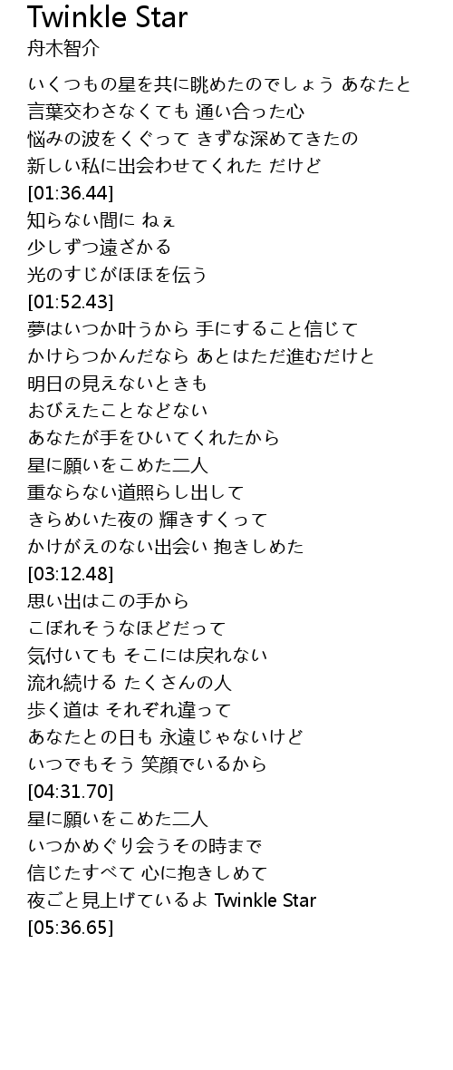 | [05:27.16] | 夜ごと見上げているよ Twinkle Star |