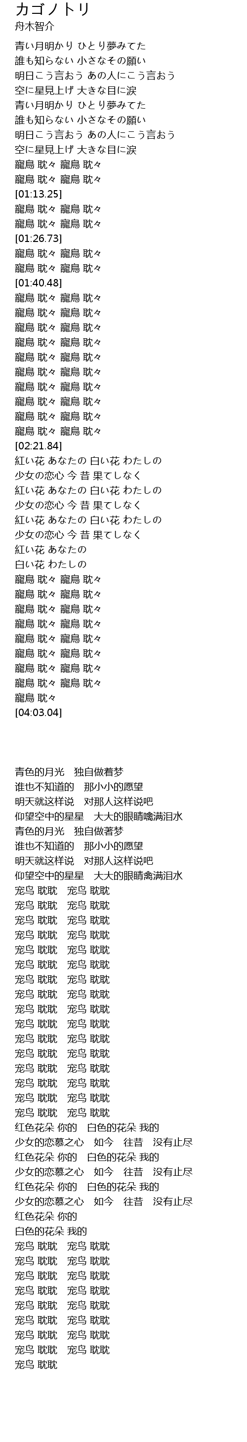 | [03:57.57] | 寵鳥 耽々 寵鳥 耽々 |