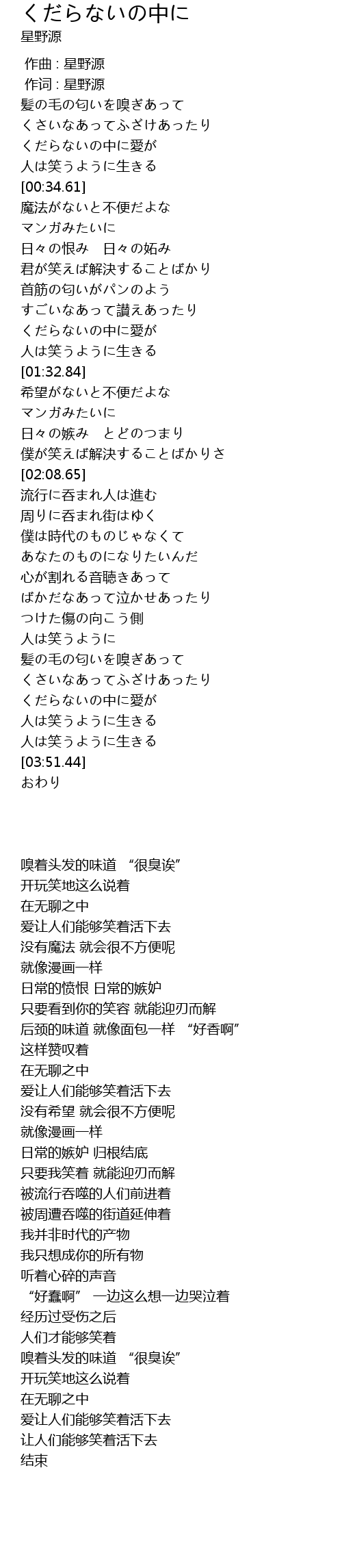 作词 : 星野源 |