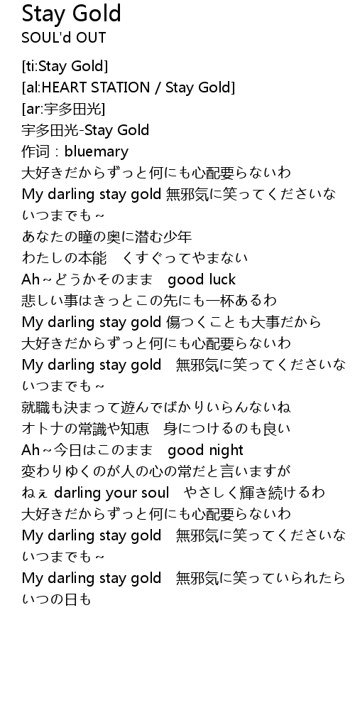 | [00:00.650] | 宇多田光-Stay Gold |