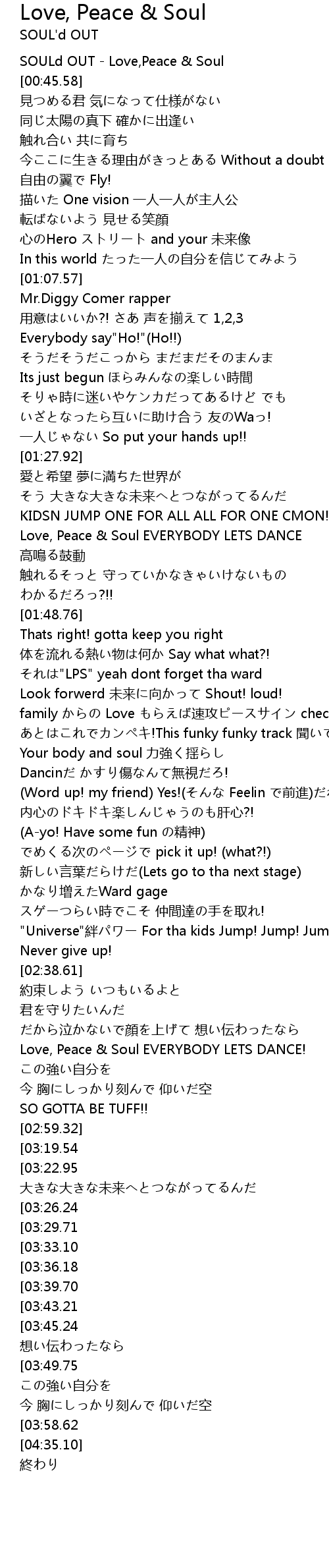 | [00:00.00] | SOULd OUT Love, Peace Soul |