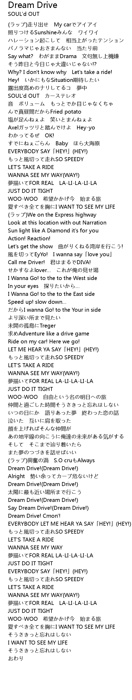 | [03:39.78] | Say Dream Drive! Dream Drive! |