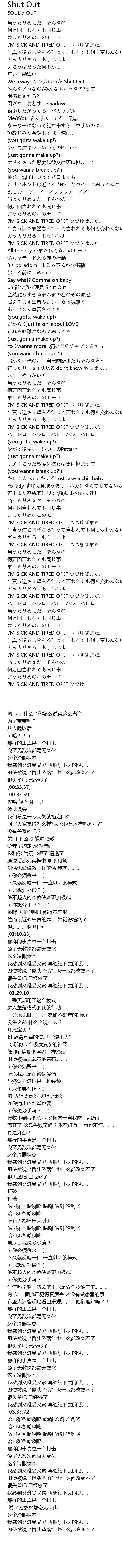 | [00:38.65] | We always ケンカばっか Shut Out |