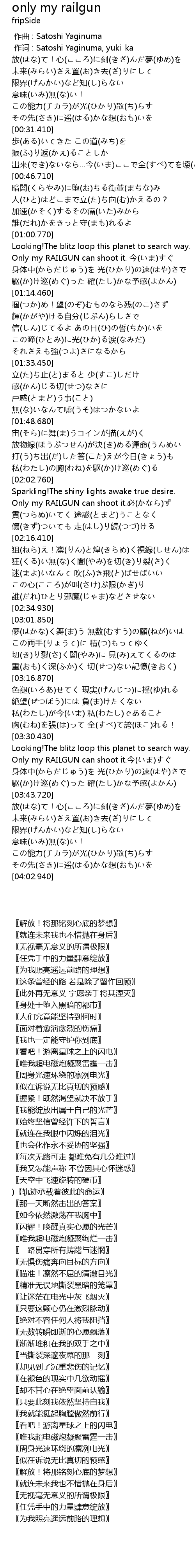 | [02:06.240] | Only my RAILGUN can shoot it.必(かなら)ず |