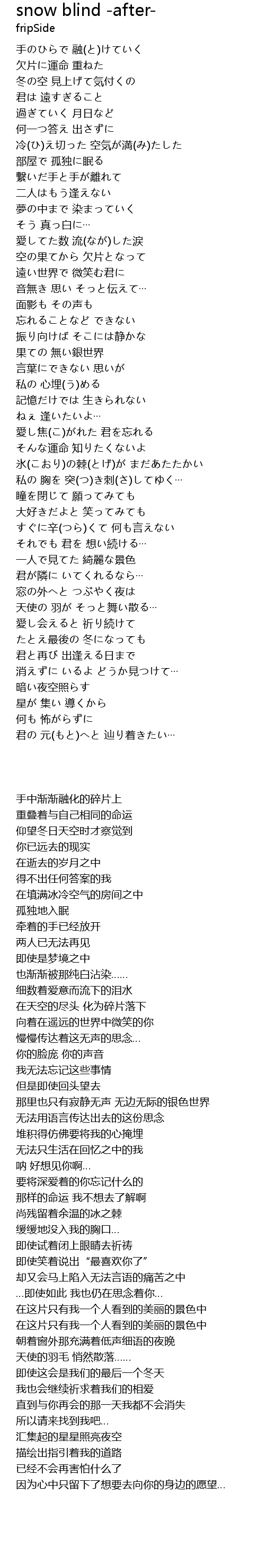 | [03:03.17] | 氷(こおり)の棘(とげ)が まだあたたかい |