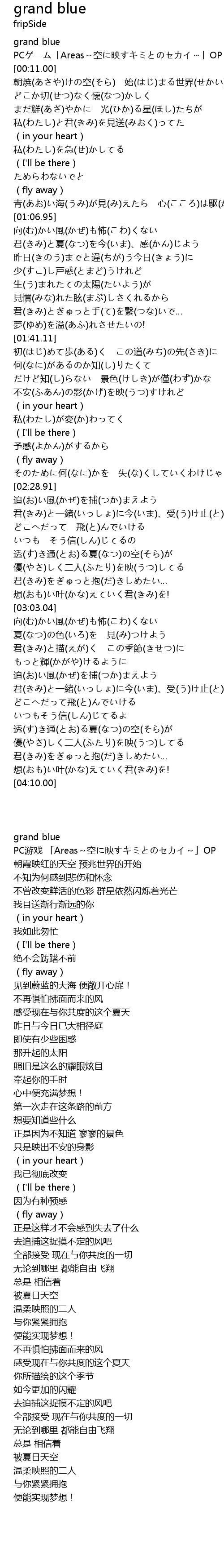 | [00:08.00] | PCゲーム「Areas~空に映すキミとのセカイ~」OP |