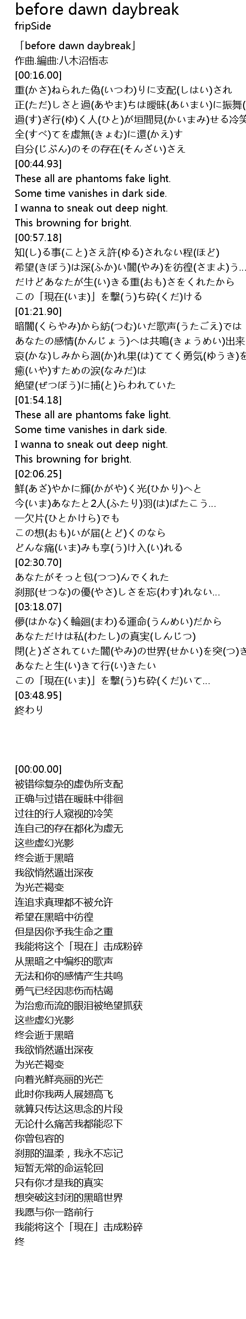| [00:00.00] | 「before dawn daybreak」 |