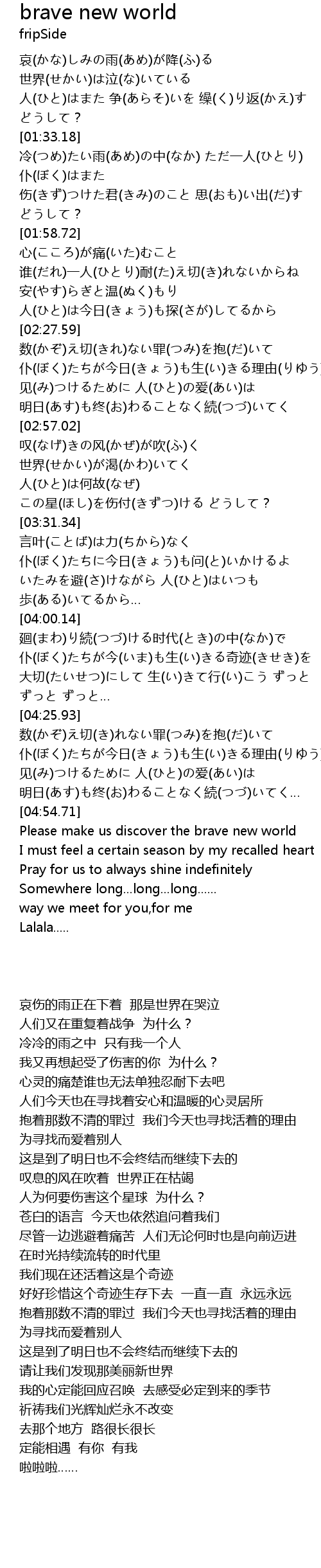 | [02:40.83] | 见(み)つけるために 人(ひと)の爱(あい)は 明日(あす)も终(お)わることなく続(つづ)いてく |