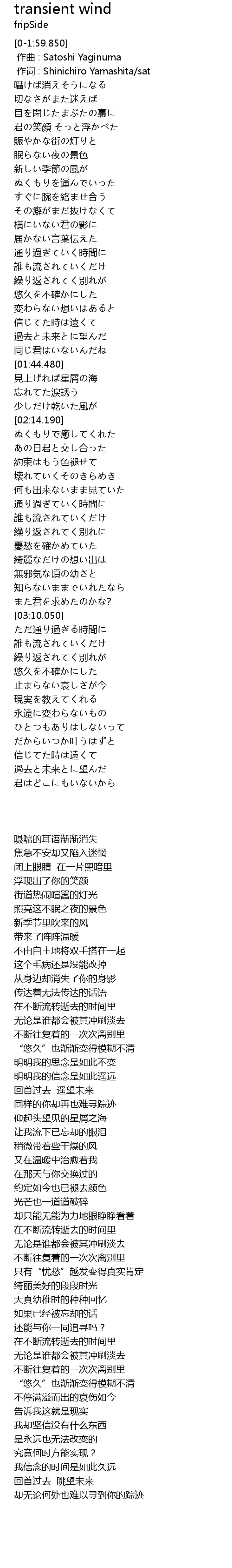 | [00:00.260] | 作词 : Shinichiro Yamashita/sat |