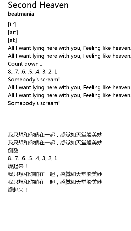 | [00:59.67] | All I want lying here with you, Feeling like heaven. |