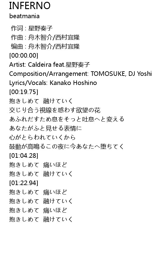 | [00:10.04] | Composition/Arrangement: TOMOSUKE, DJ Yoshitaka |