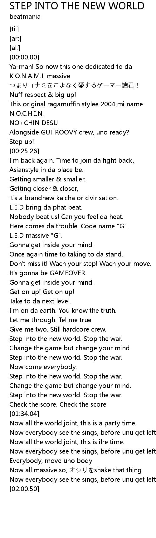 | [00:05.01] | K.O.N.A.M.I. massive |