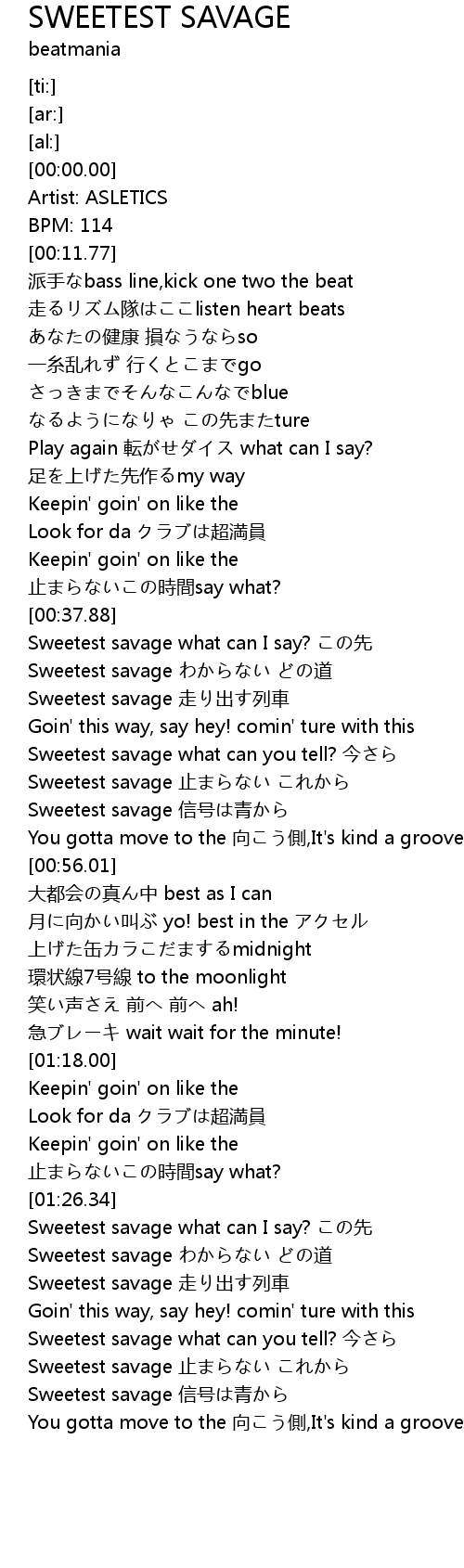 | [00:40.22] | Sweetest savage わからない どの道 |