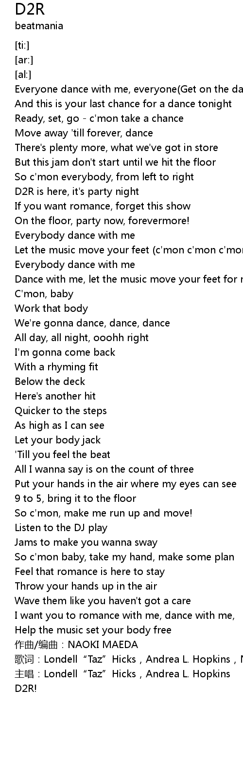 | [00:01.78] | Everyone dance with me, everyone(Get on the dance floor now!) |