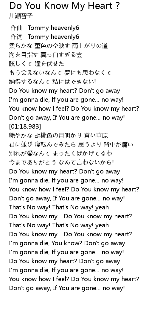 | [01:01.655] | Do You know my heart? Don't go away |