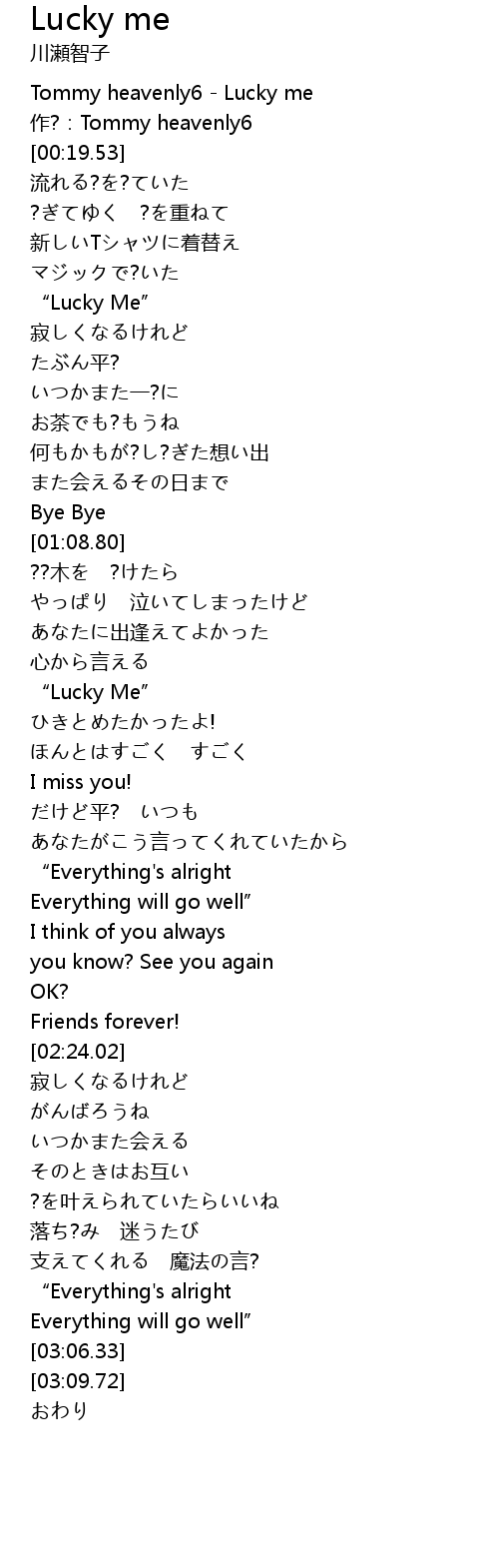 | [00:00.00] | Tommy heavenly6 - Lucky me |