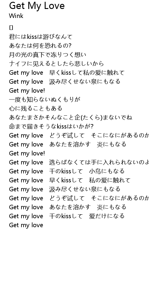 | Get my love 早くkissして 私の爱に触れて | |