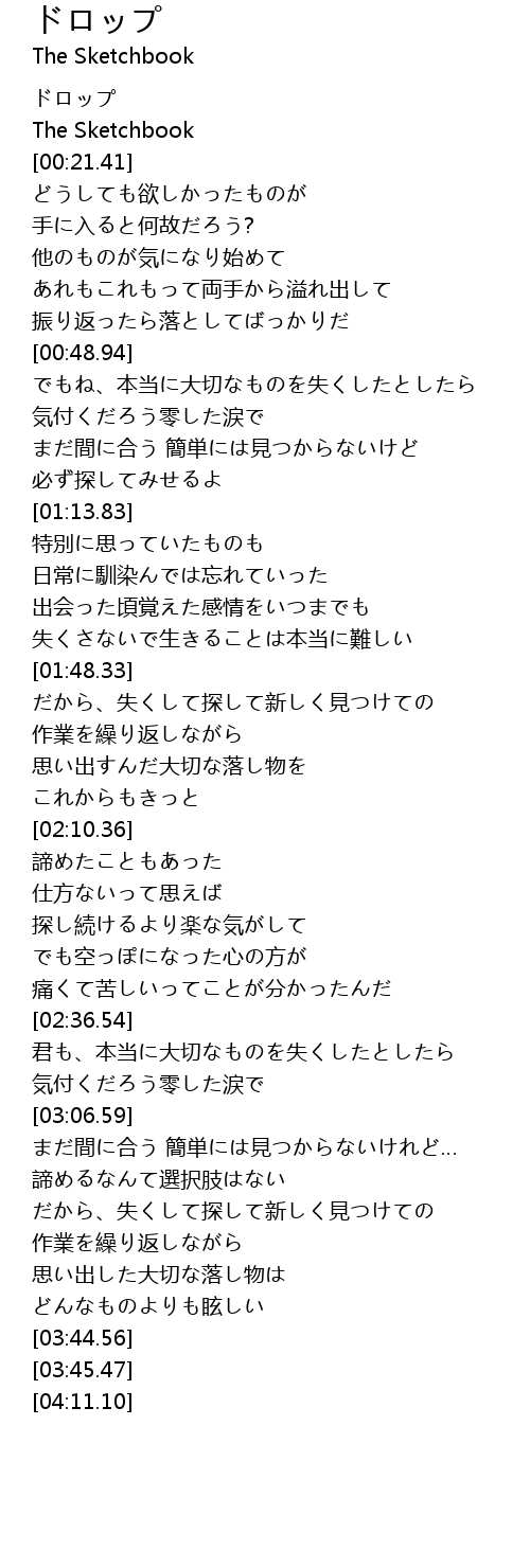 | [01:59.04] | 思い出すんだ大切な落し物を |