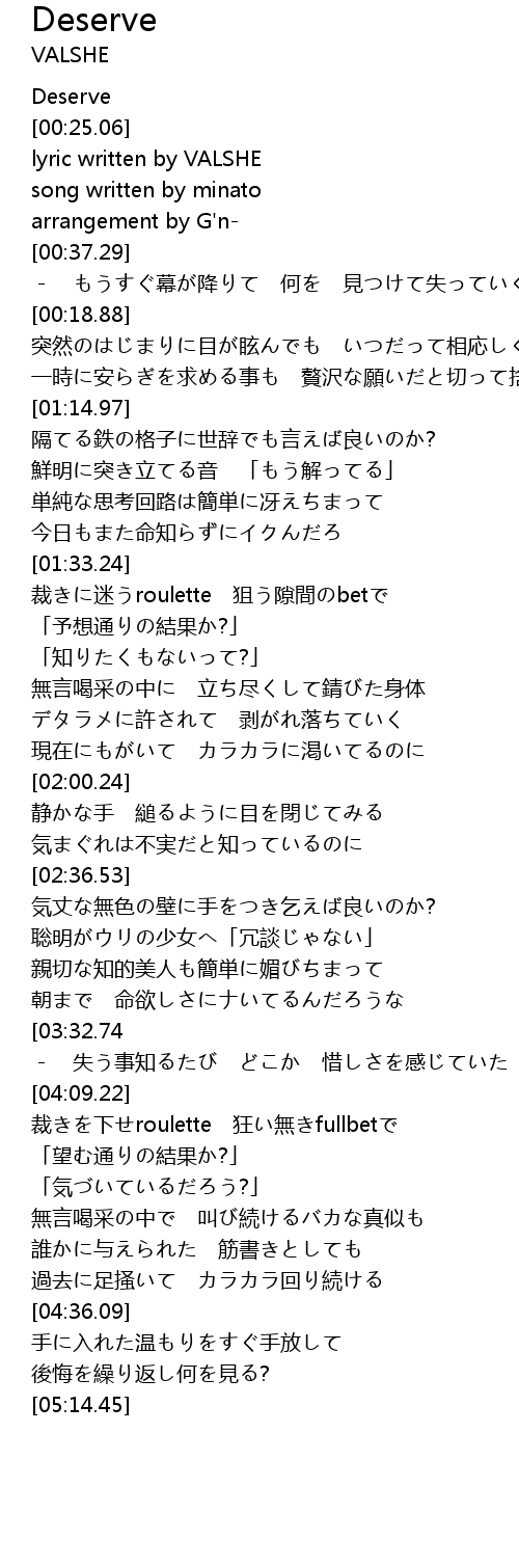 | [00:57.17] | 一時に安らぎを求める事も 贅沢な願いだと切って捨てた |